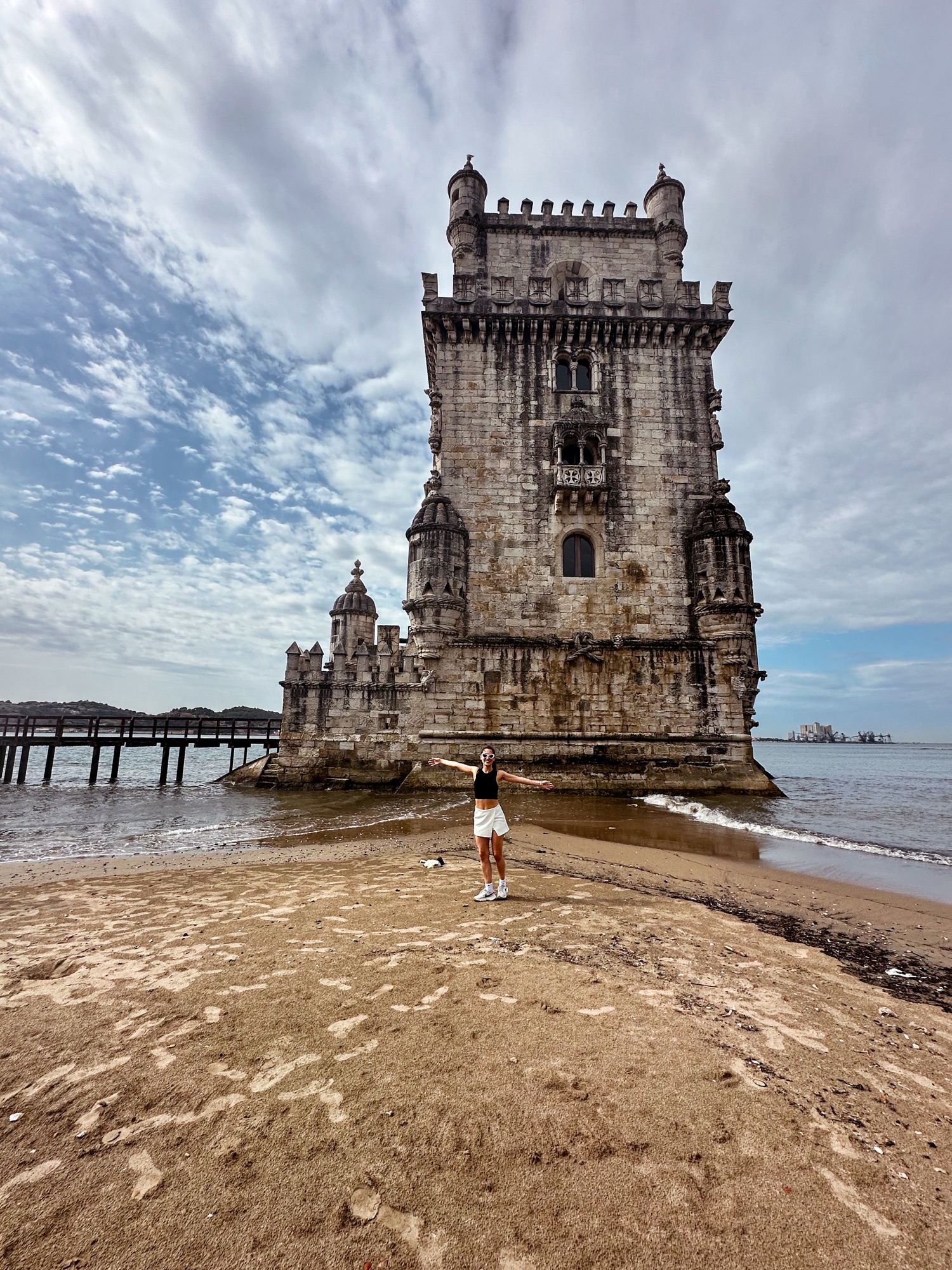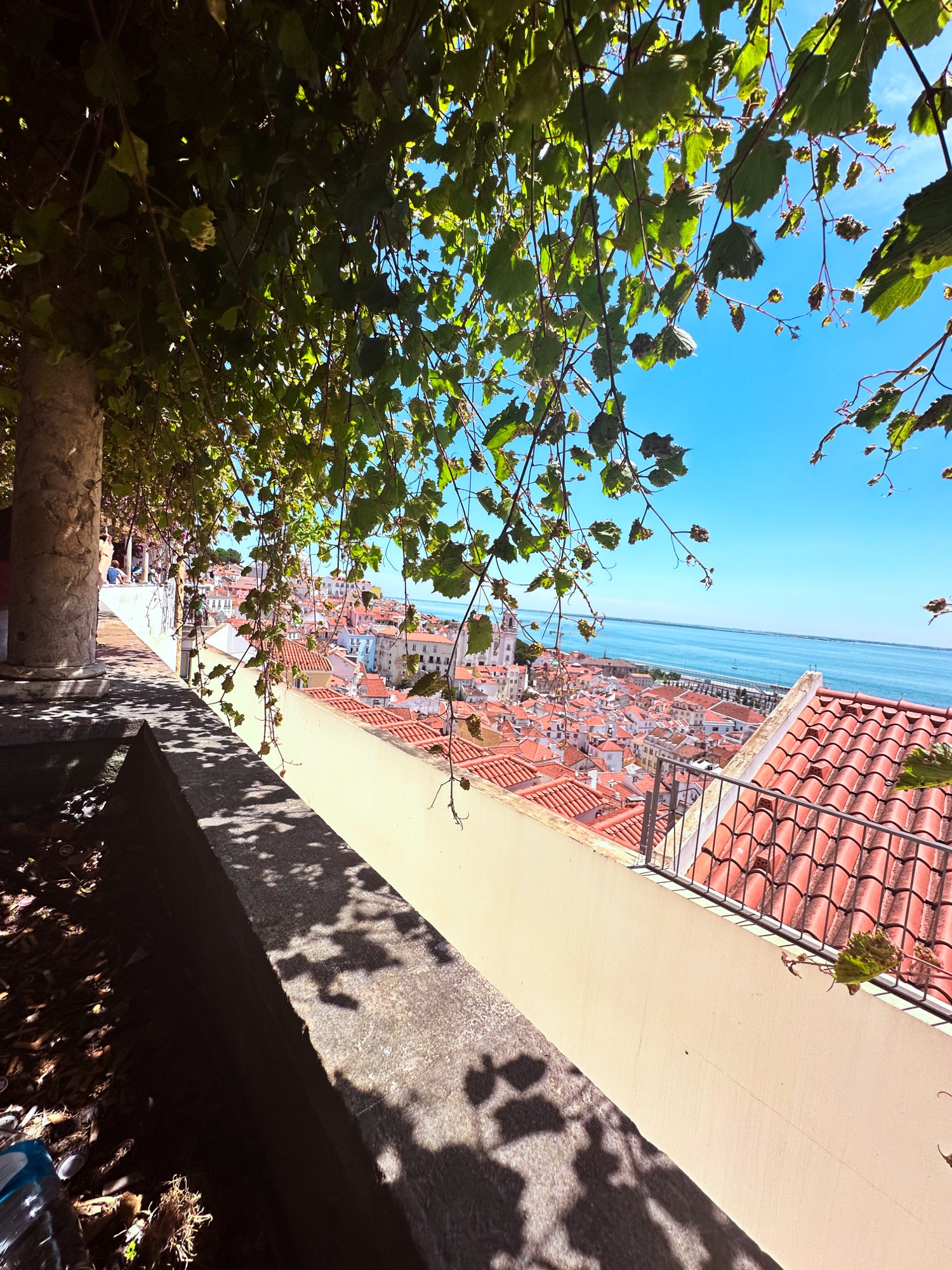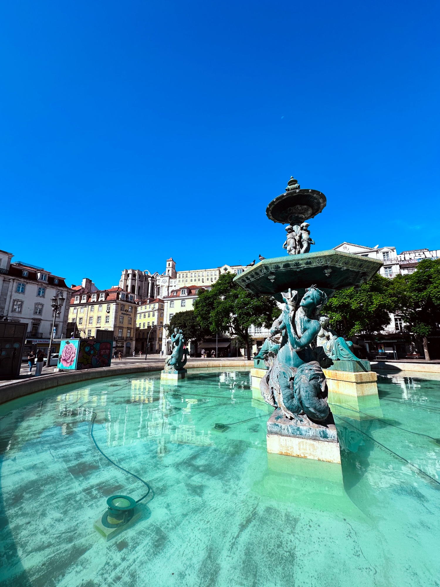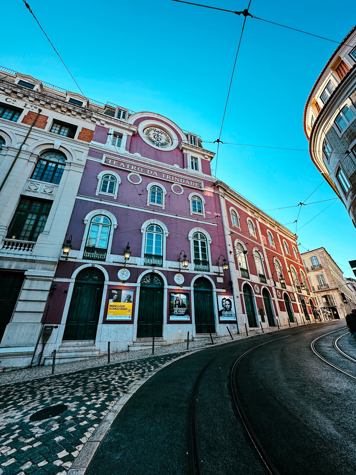 Lisbona nasce su sette colli, meno famosa (e bella) dell’altra dei sette colli. Tuttavia, in quanto a saliscendi non è minimamente paragonabile all’altra. Se state cercando un posto in cui smaltire i Pastel de Nata che mangerete, siete nel posto giusto (i tram sono solo per le foto instagrammabili..). Ha un’aria coinvolgente e calda (in tutti i sensi), variopinta. Ho amato le facciate dei suoi teatri, i palazzi del Chiado. Le vetrine storiche, i ragazzi che giocano a scacchi sui tavolini fuori dai bar. Ho amato lo scheletro senza tempo del Convento do Carmo: mi sono seduta al sole di una delle sue navate e ho semplicemente guardato il cielo, chiedendomi cosa se ne pensi lassù di una chiesa senza confini. A me è piaciuta così tanto. Si affaccia sull’Oceano e il clima di attesa si dissipa fra le vie, come se la città stesse ancora aspettando qualcuno dal mare, come se dai vari miradouro ci si affacciasse per scrutare l’orizzonte in cerca di una prua. A Lisbona è quasi tutto chiuso il lunedì. Segnatevelo, o vi ritroverete a fotografare porte sbarrate. A parte Starbucks naturalmente, dove ogni mattina compravo il mio cappuccino Large. Se percorrerete la strada verso Belem, troverete sulla sinistra un cinema con una scritta, ” Amor è un fogo que arde sem se ver”. L’ho vista in Uber e una volta scesa sono tornata indietro a piedi per fotografarla. Agli amori silenziosi, quelli che hanno un crepitar incessabile, quelli che non si spiegano, non si promettono, ma che fanno luce, che scaldano. Cercate un palazzo, all’altezza del Chiado, con un’installazione sulla facciata, due mani che si scambiano una rosa. Dedicato alla gentilezza. E poi scendete di nuovo verso il mare, sulla lunga via che conduce a Praca do Comèrcio; forse incontrerete qualcuno che vorrà farvi una foto e voi sarete sudate e sconvolte dal caldo, ma siete a Lisbona e tutto vale un sorriso.